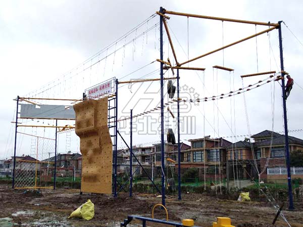 規格:占地17米×17米,由15個1米×1米×4米高的站臺組成。平臺高2米。起點和終點設有樓梯。   包含項目:獨木橋、勇往直前、圓木橋、圓木秋千、等…